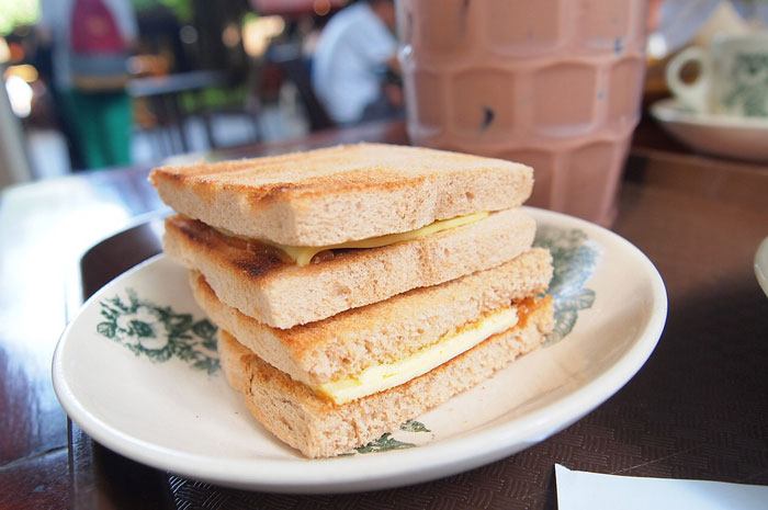 These are not grilled cheese sandwiches, but kaya toast. Simple and sweet, kaya toast is warm bread slathered with creamy coconut jam that's been infused with pandan leaves.
