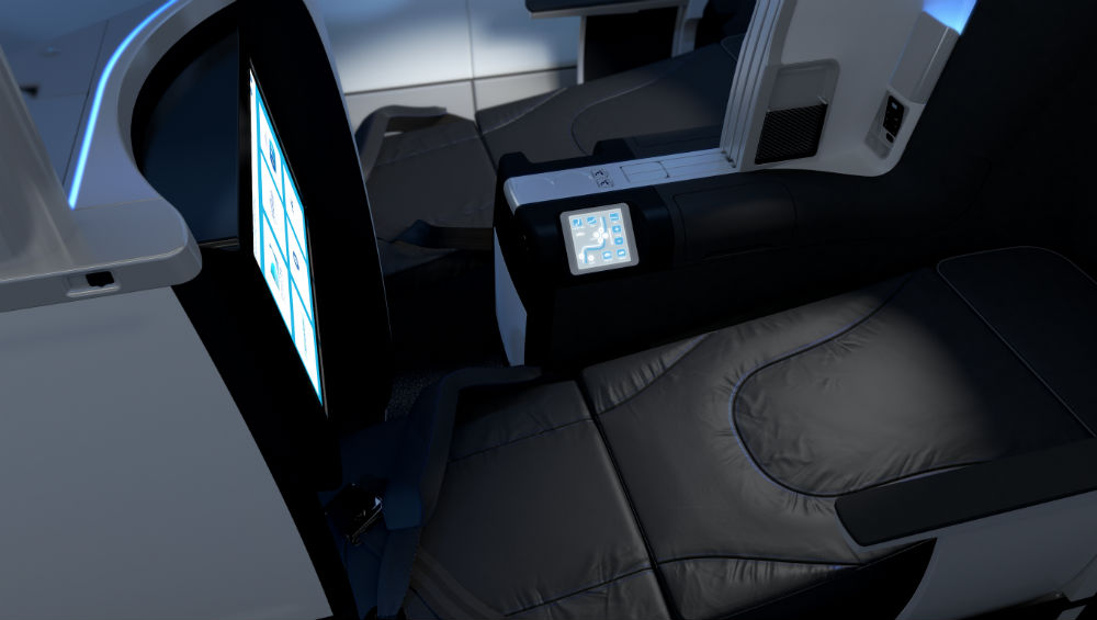 Waiting at my seat were a blanket, pillow, and amenity kit as well as a welcome note from the two flight attendants, a nice personal touch. As I was getting situated, one of the flight attendants came by to introduce herself and acclimate me to the seat; she also offered a refreshing welcome drink of mint, lime, and club soda, with or without vodka.
