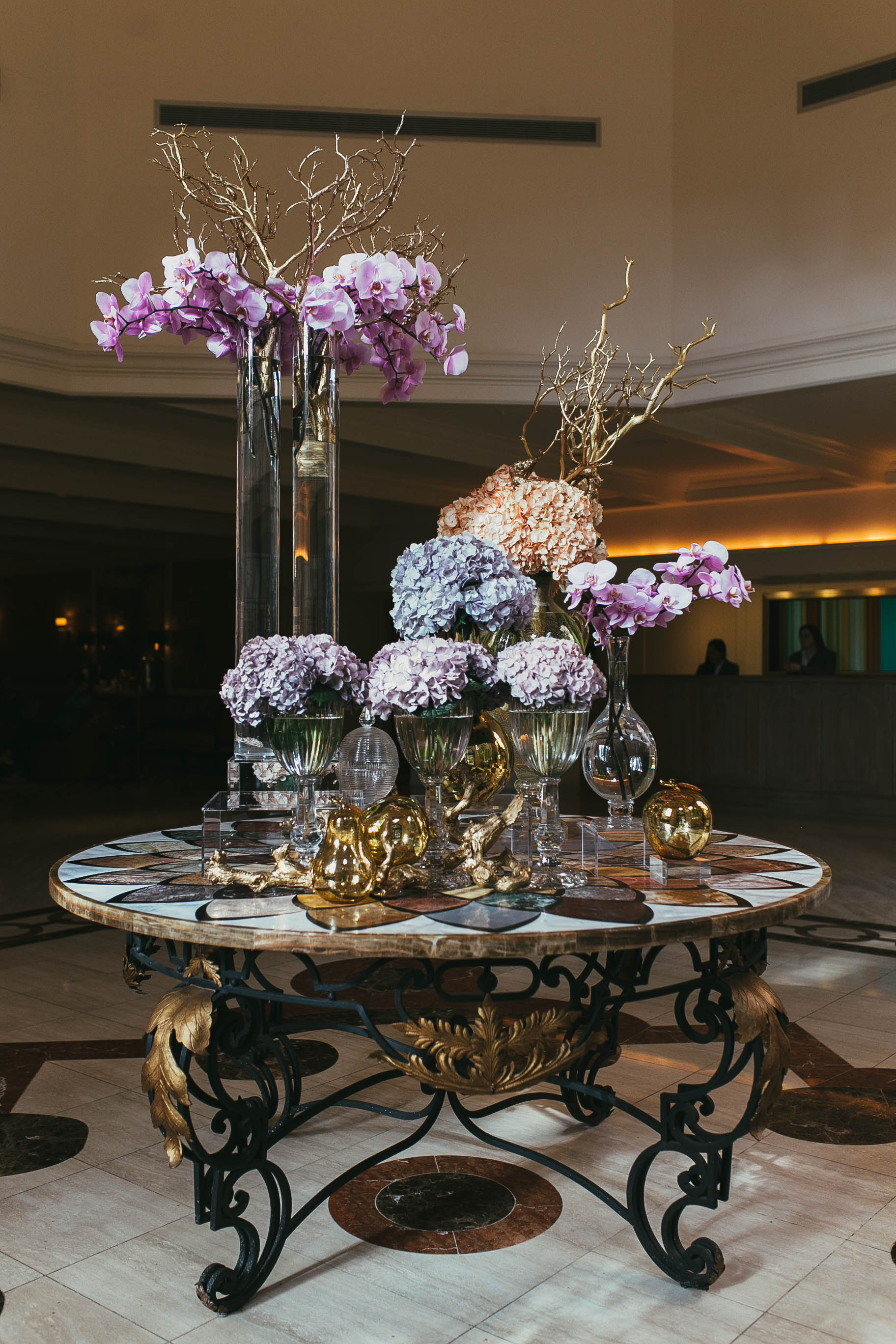Upon entering the hotel, the first thing you encounter is a stunning floral arrangement within a 32-foot-high marble rotunda. The staff changes the arrangement regularly, and it is jaw-dropping every time. The hotel lobby is beautifully decorated with art, oversized sofas, comfy chairs, and a fireplace, collectively it invites you to sit for a moment.