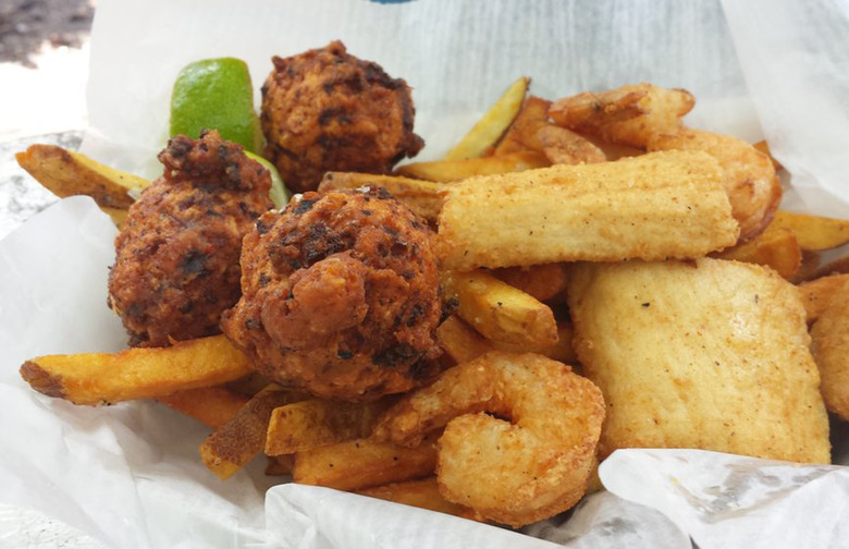 Make sure you're hungry when you go to the Islamorada Shrimp Shack! The extensive menu includes a wide range of seafood like cracked conch, ahi tuna, shrimp fritters, shrimp and grits, po'boy sandwiches and shrimp jambalaya.