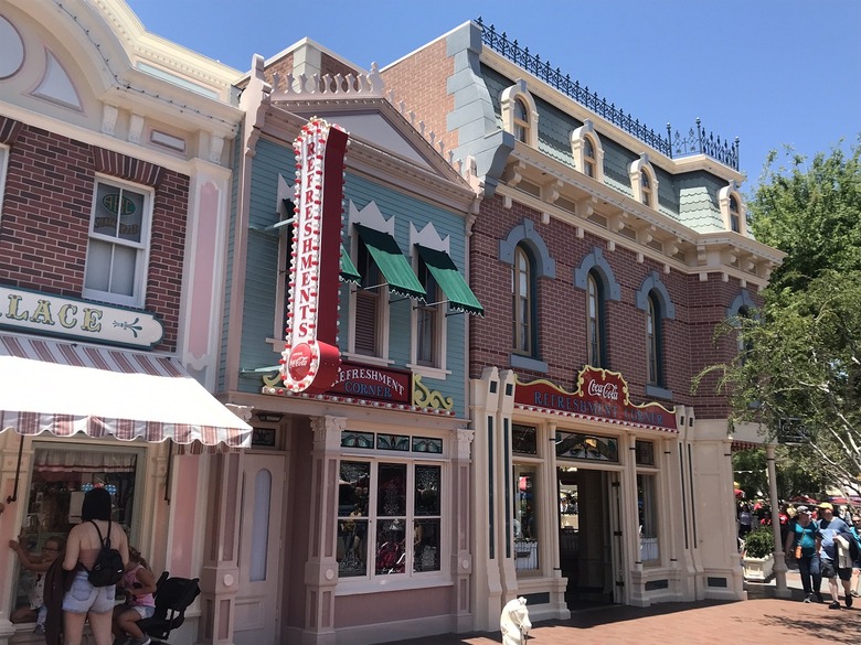 Main Street U.S.A. may be one of the most all-American destinations you can visit, but look really closely at the "American" flags throughout the Disney parks. They're all missing a stripe or star, so they're not really American flags. Is it a mistake? Nope! Because each flag is fake, Disney doesn't have to follow American flag regulations, such as flying flags at half-mast during certain situations or shining lights on them during the night. There is one real flag at the front of Main Street at both Disneyland and Walt Disney World's Magic Kingdom, and the parks hold a flag retreat daily.