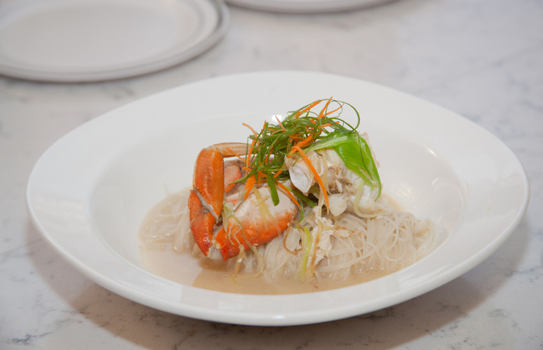 It's Singaporean comfort food! The noodle soup topped with fresh crab legs were a success.