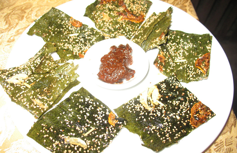Typical cuisine in Laos is reminiscent of that of its neighbors Thailand and Cambodia — a group sharing a table also shares sticky rice, spicy soup, and side dishes of meat. In Vientiane, quality French restaurants abound due to France's influence during the colonial era. Pop some kaipen, or fried seaweed, a popular snack made with green freshwater algae and sesame seeds. It's usually served with jaew bong, or chile paste. Another well-known dish is khao poon, or rice vermicelli soup, which has a chile and meat base and also includes vegetables like spring onion, string beans, and shallots.