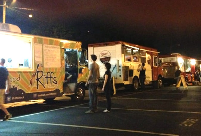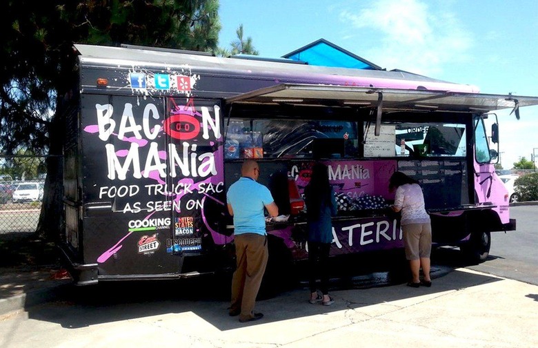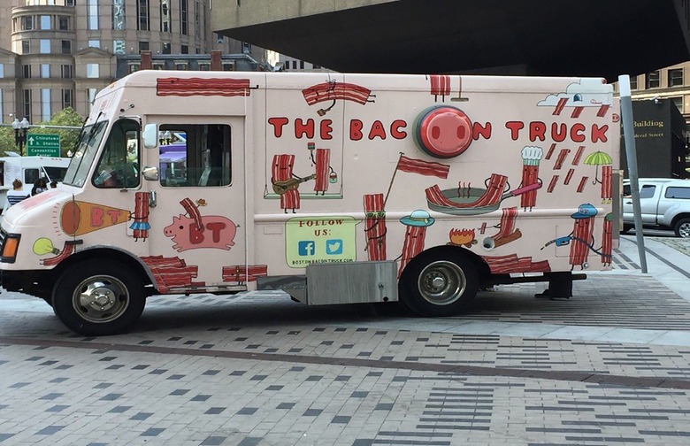 Operated by two high school friends who were brought together by their love of bacon, the light pink-colored Bacon Truck serves only one item that doesn't ostensibly include bacon, and that's habanero garlic pickles. By all means, order them as a side, but do not miss "The Hangover," which consists of bacon, bacon scallion hash, Cheddar, and havarti with a fried egg, or the Turkey Avo, with truck-roasted turkey breast, bacon, beefsteak tomatoes, lettuce, and chimichurri aïoli. And for dessert? Nutella-covered bacon, of course.