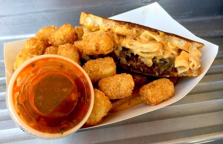 The Grilled Cheese Truck has dropped out of the top 50 portion of our 101 Best Food Trucks this year, having been a mainstay there since 2012. However, that doesn't mean it's any less of a must-visit stop while you're in the LA area. Its cheesy mac comes fully loaded with sharp Cheddar and barbecue pork; the French onion soup melt features Gruyère with onion soup compote and a Parmigiano-Reggiano crust; and the Pepperbelly Melt includes chili, cilantro lime sour cream, tomato salsa, and Fritos. There are also savory additions, like mac and cheese and bacon; sweet additions, like Nutella, toasted marshmallows, candied walnuts, and peanut butter; sides like tomato soup and tater tots; and, finally, "crusts," like jalapeño or bacon-Parmesan, which line the corners of the mac and cheese.