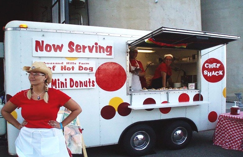 Past customers of Baby's Badass Burgers have noted that something about the presentation can be a bit much. More specifically, that means tiny booty shorts, tight tank tops, and high heels worn by the "burger babes," pictures of whom you can view here. The truck, the creation of ex-New York restaurateur Erica Cohen and event planner Lori Barbera, also has a logo that features a scantily clad girl holding up two burgers. All of this, of course, makes it wildly popular on LA's streets and also on TV — the truck has had cameos on both Entourage and CBS' The Defenders.