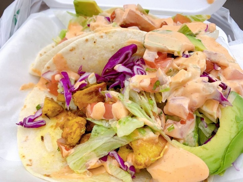 There aren't a lot of all-vegan trucks on this list, but here's one that's a must-visit, even for meat-eaters. Homegrown Smoker serves a variety of protein options — like tempeh ribs, smoked soy curls, and smoked tofu — in a variety of ways. Order a plate (with sides like hushpuppies, mac no-cheese, and chipotle slaw), throw it on a sandwich or burger with homemade barbecue sauce or mustard, or roll it all up in a burrito. Who needs meat when you have delicious food like this?