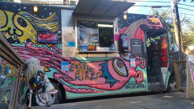 Perhaps the most beautifully, psychedelically designed food truck around, East Side King is run by a man every Top Chef fan knows: Season Nine winner and former executive chef at Austin's Uchiko, Paul Qui. Chef Qui's truck menus represent his spin on Japanese street food, which includes panko fried pork shoulder with jasmine rice, kimchi, cucumber, tonkatsu sauce, green onion beni shoga, and kewpie; and deep-fried chicken with sweet and spicy sauce, basil, cilantro, mint, onion and jalapeño.