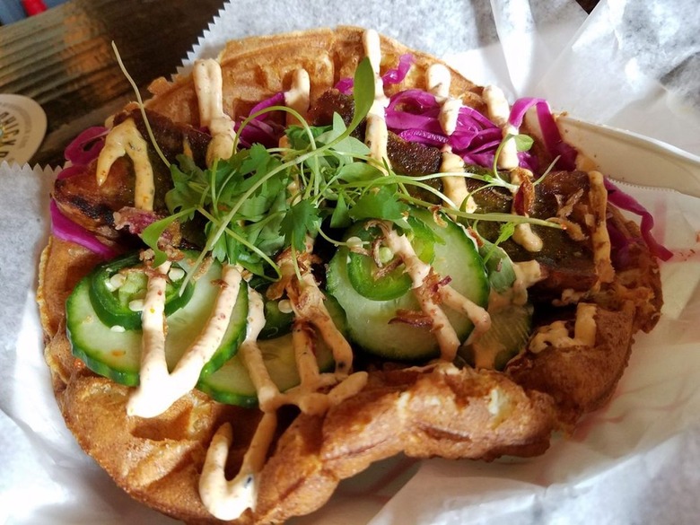 Dapper Dogs and Foolish Waffles: Philadelphia certainly takes the cake when it comes to Victorian novel-esque names for food trucks. Foolish Waffles serves mostly savory, but a few sweet waffles, too. Their chile honey-glazed buttermilk fried chicken waffle with pickled bourbon jalapeños — which you can also get bánh mì-style — is stellar, and if you must go sweet, pick their Liège sugar waffle topped with mascarpone whipped cream, black pepper bacon toffee, salted caramel, and Maldon smoked sea salt.