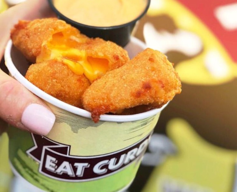 The Cow and the Curd only serves one thing, but boy do they do it well. C&C makes battered fried cheese curds, which sounds a little mysterious at first — until you realize they're essentially mini mozzarella sticks, and you dive right in. All right, so they're not really like mozzarella sticks, but they do bear a few similarities. Both are fried to golden-brown perfection, both are hot and melty and stretch into gooey strings when you bite into them, and both are enhanced by various dipping sauces.