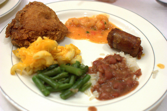 Dooky Chase's Restaurant began in 1939 as a sandwich shop and lottery ticket outlet, and grew to become a spot where Civil Rights leaders met to discuss politics and culture. Owner and chef Leah Chase is a legend who is often referred to as the "Queen of Creole Cuisine"; there's even a portrait of her in the Smithsonian National Portrait Gallery. The secret to the extra-crunchy fried chicken is the evaporated milk that's used in the egg wash; this is her recipe.