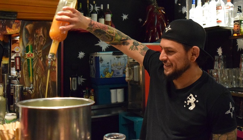 After tasting signature cocktails at four bars, highlighted by Winston Greene's rum-driven Kiss to Build a Dream On at Tonic, I settle in at Coyote Café to watch barkeep Dario Jiminez pour it on. After he shakes up a Chimayo Cocktail, it's table time for a lovely Gruet-hosted dinner.