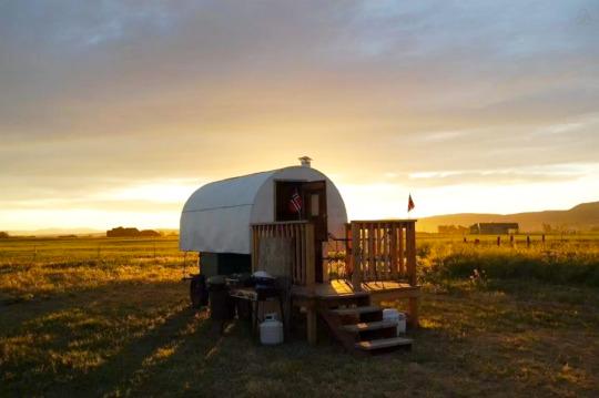 Back in the day on the Oregon Trail, amenities included dying oxen and dysentery. Luckily, this antique covered wagon only comes with a sky full of stars and grazing animals. Cozy up for only $99 a night (it sleeps two) and enjoy the peaceful surroundings of rolling pastures and mountains. Just minutes from Bozeman, you're conveniently located near humanity yet surrounded farm animals.