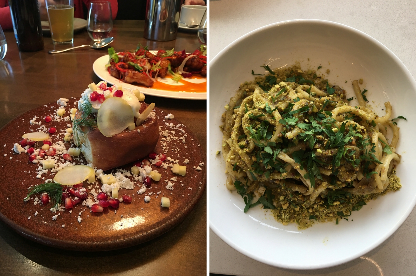 At this stylish Downtown bistro, chef Jonathan LeBlanc rounds out his menu of housemade pastas and standout small plates with a fully vegan menu that goes beyond simply removing meat and dairy items from the regular offerings. We love the pistachio pesto bucatini with vegetable consummé, ground pistachio, parsley, olive oil, garlic and shallots. Pair it with an Italian wine from Stanza's extensive list, one of their Negroni variations or an Italian soda.
