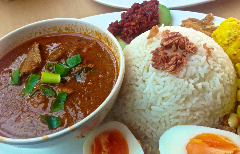 In Malaysia's capital, join locals at the abundant food stalls for a fast way to eat authentically and affordably. The melting pot of Malaysian cuisine is strongly influenced by the neighboring countries of India and China. The latter inspires char kuey teow, wok-fried rice noodles tossed with pork, shrimp, and bean sprouts. Tuck into nasi lemak, coconut rice topped with sambal (traditional chili sauce), crunchy dried anchovies, roasted peanuts, cucumber, and hard-boiled egg. For dessert, enjoy apam balik, pancakes stuffed with ground, roasted peanuts and sugar. Optional add-ons include banana and coconut, two popular ingredients in Malaysian fare.