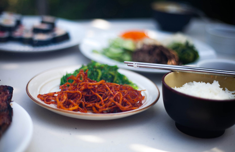 At a glance, seasoned sliced squid looks similar to spaghetti in marinara sauce.