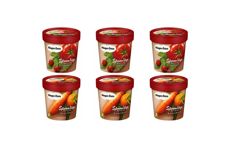 These flavors of ice cream — tomato-cherry and carrot-orange (not cherry tomato and orange carrot) — are neither sorbets, nor are they very healthy.