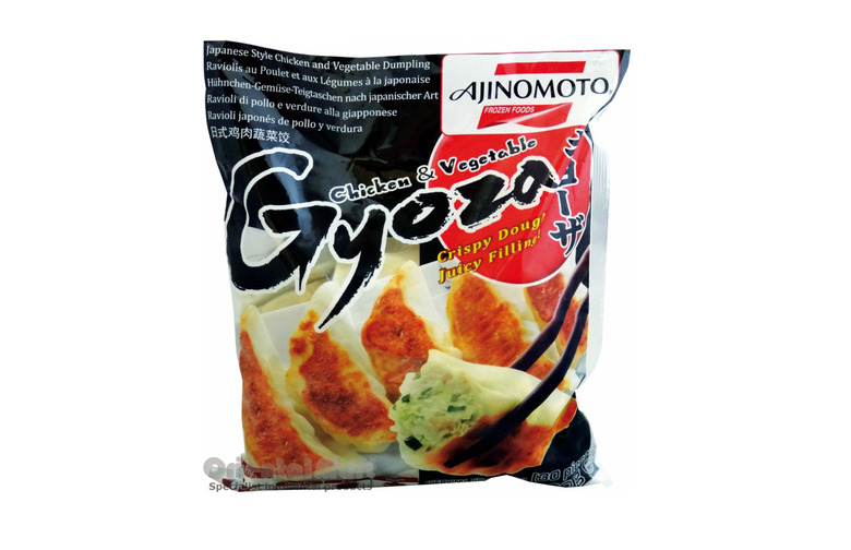 The 12-pack is manufactured by the company Ajinomoto. The dumplings can be reheated without water or oil.