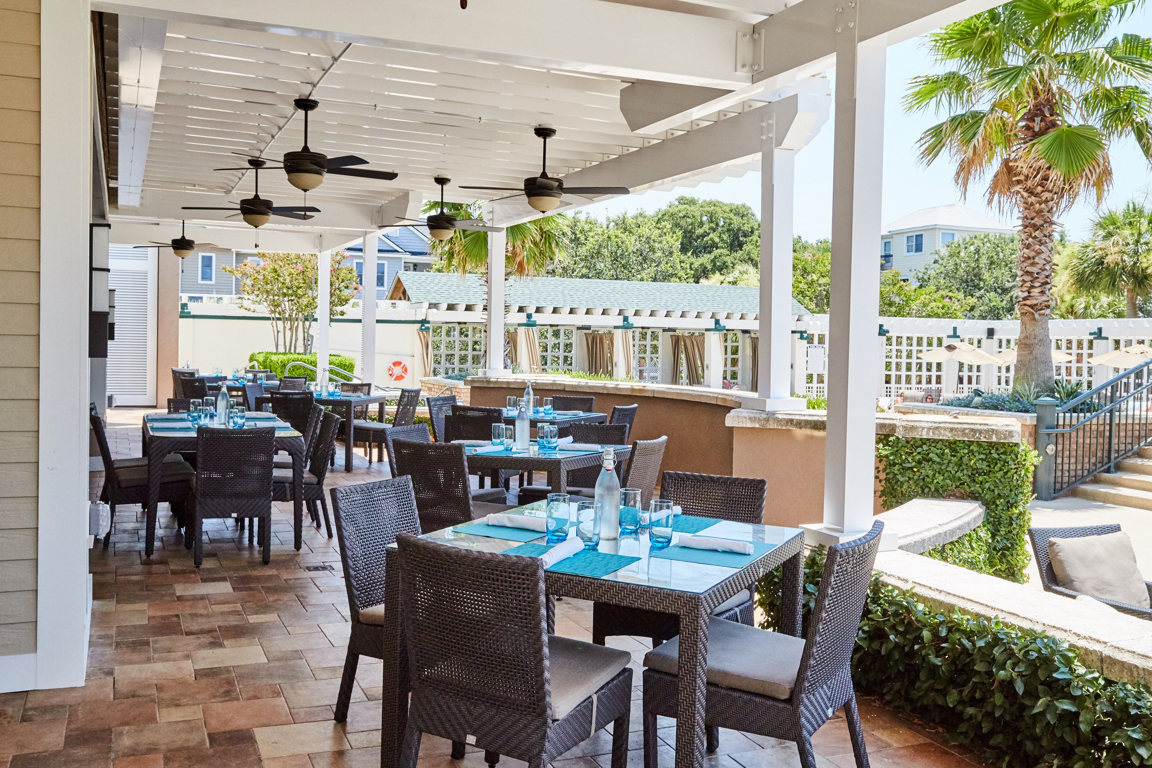 For beachside dining, The Grand Pavilion Bar & Grill offers casual grub like burgers and wraps plus frozen and mixed drinks, all served alfresco with prime views of the water. There's a kids menu with bites and non-alcoholic "kiddie cocktails" if you're dining with children.