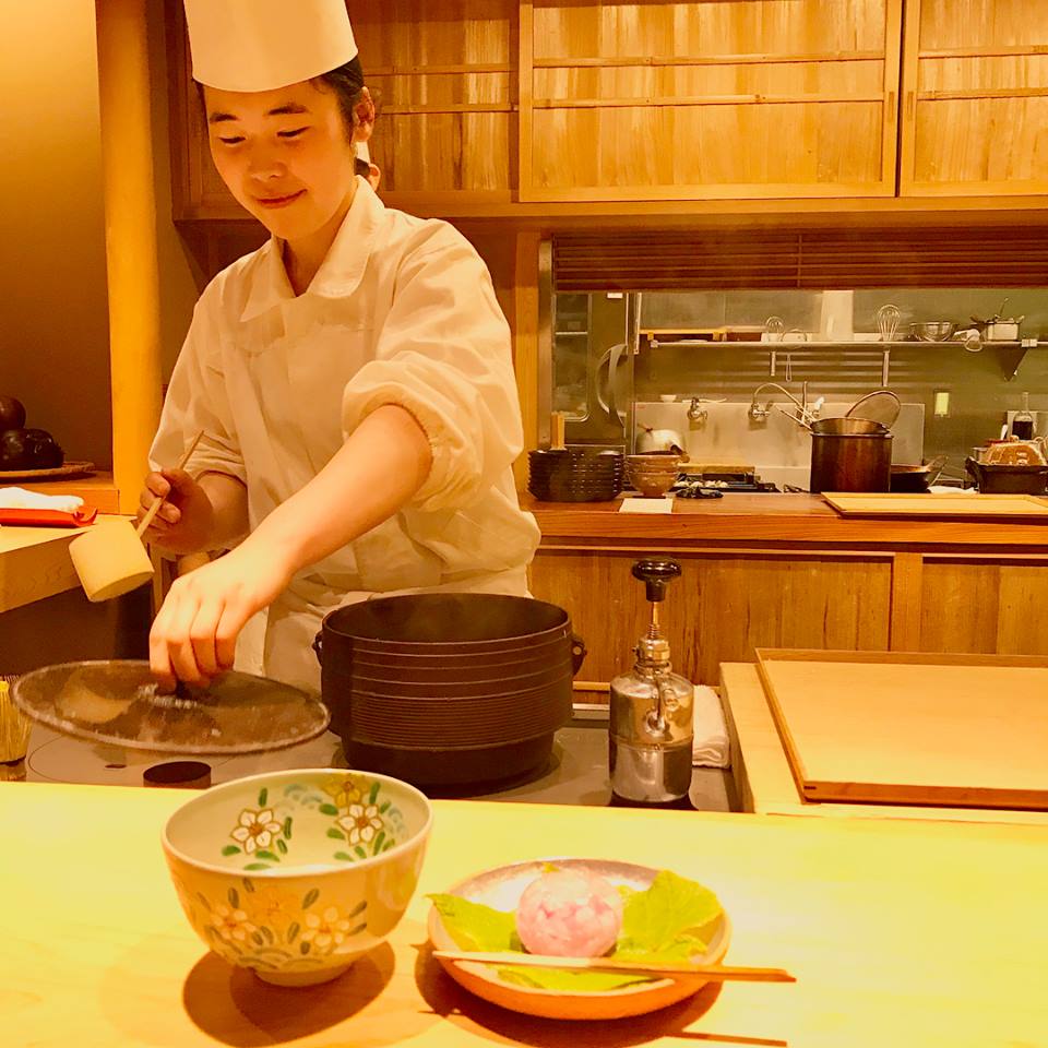 The women here operate under an apprenticeship, some as young as 16, working long and hard hours to perfect their craft. They live together in dorms, as part of their training, to build comradery and teamwork and learn how to respect others. To deepen their knowledge in the art of cuisine, the women are educated in cultural and artistic studies such as: haiku, flower arranging, singing, calligraphy, tea ceremonies and English education. On Sundays, the women go to ballets, museums, and opera to influence their work in the gastronomic space. The young women start with basic training in the central kitchen to learn knife skills before moving to the counter at the restaurant.