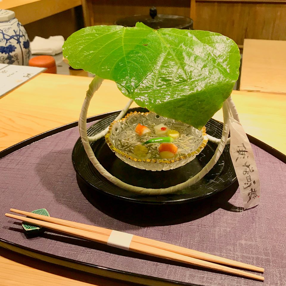 The early morning starts at the famous Tsukiji Market, at a specific vendor, to hand select the finest fresh fish and then the work begins on developing the multi-course menu, which changes monthly, and is dependent on what fresh fish is available that day. The plates and glasses also change with the seasons and are often inspired by the flowers that are in bloom.