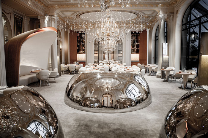 Michelin-starred chef Alain Ducasse reopened his flagship Parisian Plaza Athenee, located on the prestigious Avenue Montaigne, restaurant this year to much anticipation. In a bold move, he ditched most of the meat on the menu and instead focused on a largely produced-based organic menu. Your average $475 meal (not including drinks) here won't get you the foie de veau or canard l'orange you might expect. Instead, white-gloved servers under a ceiling lined with over 10,000 crystals will expertly deliver new dishes like black rice with shellfish and Anjou-grown quinoa, and Mediterranean fish with bulgur wheat. Expect a tab of around $1,150 for two when all is said and done (and eaten) as the menu prices do not include beverage costs from Sommelier Laurent Roucayrol's carefully curated wine list.