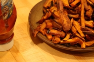 Since you don't have to fry them, you can bake up these fries in large quantities — all you need are some baking sheets, oil, and a knife. Enlist an early guest to help you cut potatoes. Once baked, feel free to dip them in your chili!