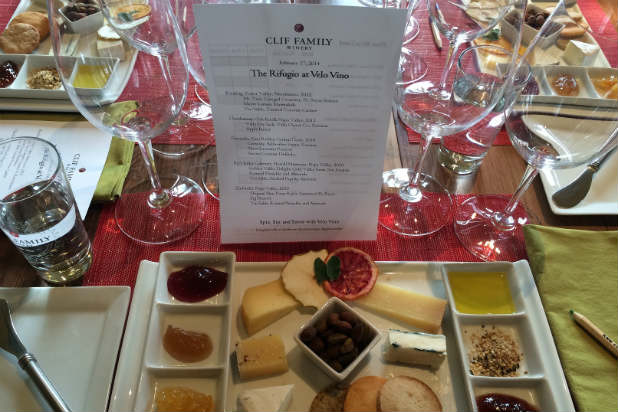 The folks at Clif Family are the same who started Clif Bar. Their winery tasting room, "Velo Vino," sits right on highway 29 in St. Helena. From this room they offer a handful of wide-ranging tasting experiences that are closely tied to products that come off of their nearby farm. Clif Family Winery is a boutique operation making less than 5,000 cases of wine in total. Their involvement in the community with a CSA program, cycling tours, and the like only add to their broad appeal for the consciously minded among us. As for the wine tastings, they offer a quartet of options that range in scope and are priced from $15 to $50. I took part in the Rifugio tasting, which was simply marvelous. Each wine I tasted was expertly paired with small bites. Here's the rundown of the tasting.