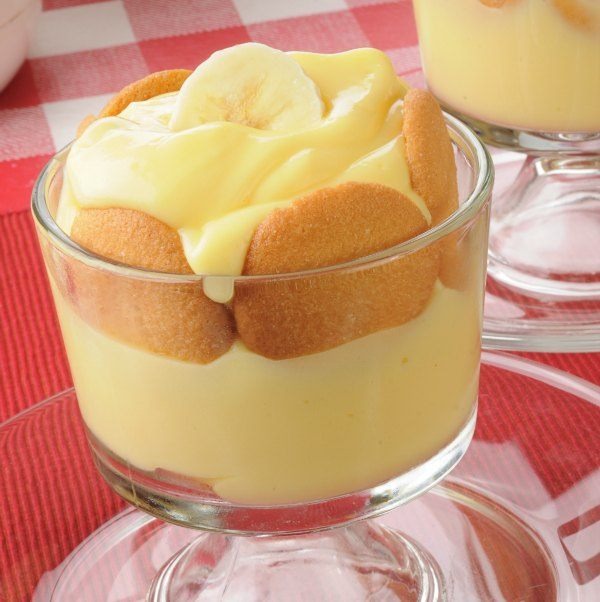 Banana pudding is a dessert that originated in the southern United States. Banana pudding is a simple, no-fuss dessert that, despite the name, is made with vanilla pudding. The dessert consists of layers of vanilla pudding, vanilla wafer cookies, and fresh sliced bananas (much like a trifle) and is usually topped with whipped cream or meringue. Banana pudding recipes first appeared in the early twentieth century — 1902 in Mrs. Rorer's New Cook Book and 1903 in The Kentucky Receipt Book — as a combination of the vanilla pudding, fresh sliced bananas, and whipped cream; the wafer cookies were added during the 1960s.