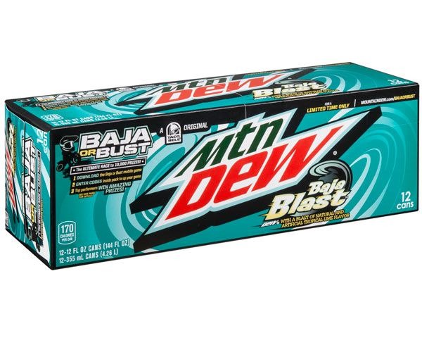 Baja Blast is a Mountain Dew flavor, originally only available from esteemed Mexican culinary hotspot Taco Bell. The brand's tagline when associated with Taco Bell is "a tropical lime storm," which sounds to us like either complete word salad or the beginning of a potentially brilliant found poem. Your call.