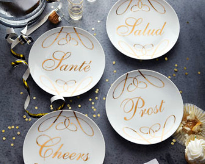 All right, all right, we're ahead of ourselves a bit, but these "cheers" dessert plates from Neiman Marcus aren't only for New Year's Eve, right?