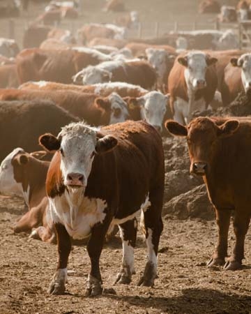Cattle are typically raised in feedlots on a corn-and-grain diet. These cattle are generally given vaccines, antibiotics when they're sick, and oftentimes growth hormones to quicken their time until harvest.