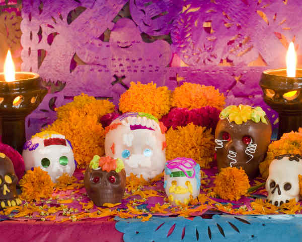 Traditionally, this holiday focuses on gatherings of family and friends in honor of those who have passed. Living relatives visit graves and build private altars that resemble elaborate shrines and can be erected in the home or at the gravesites themselves.