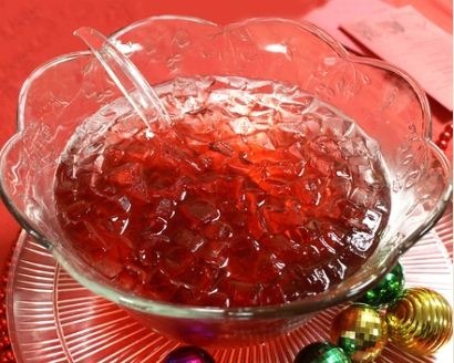 Don't worry about having a punch bowl; a soup tureen, a jug you use for summer sangria, or even a big stock pot can stand in. And adding a block of ice decorated with fruits is a great way to keep the punch cold for hours, while simultaneously diluting the punch to keep it from being too powerful.