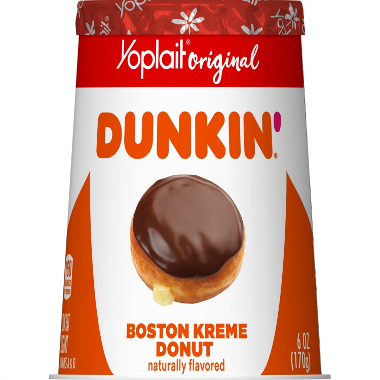 According to Yoplait, Boston Kreme Donut yogurt features chocolate frosting and pudding filling flavors, while Apple Fritter delivers "warm apple notes." The mousse-like French Vanilla Latte Whip is a twist on the coffee drink, while Cinnamon Coffee Roll offers "subtle hints of cinnamon."