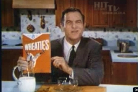 Olympic Champion Bob Richards sells the raw power of Wheaties, breakfast of champions.